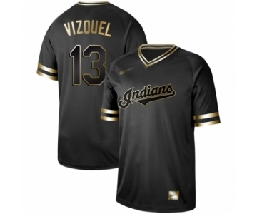Men's Cleveland Indians #13 Omar Vizquel Authentic Black Gold Fashion Baseball Jersey