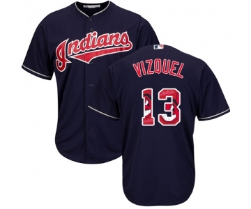 Men's Cleveland Indians #13 Omar Vizquel Authentic Navy Blue Team Logo Fashion Cool Base Baseball Jersey