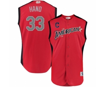 Men's Cleveland Indians #33 Brad Hand Authentic Red American League 2019 Baseball All-Star Jersey