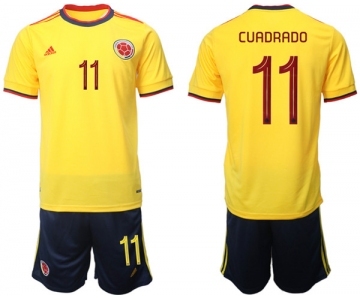 Men's Colombia #11 Cuadrado Yellow Home Soccer Jersey Suit