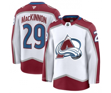 Men's Colorado Avalanche #29 Nathan MacKinnon White 2024-25 Away Stitched Jersey