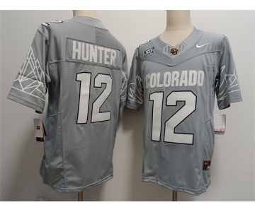 Men's Colorado Buffaloes #12 Travis Hunter Grey With XII Patch 2024 F.U.S.E Stitched Football Jersey