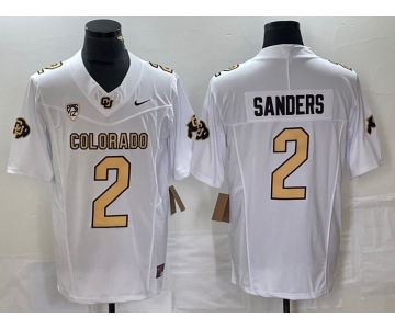 Men's Colorado Buffaloes #2 Shedeur Sanders White 2023 F.U.S.E. Stitched Football Jersey