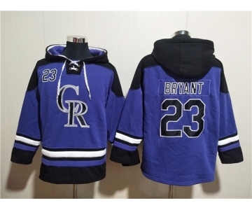 Men's Colorado Rockies #23 Kris Bryant Purple Ageless Must-Have Lace-Up Pullover Hoodie