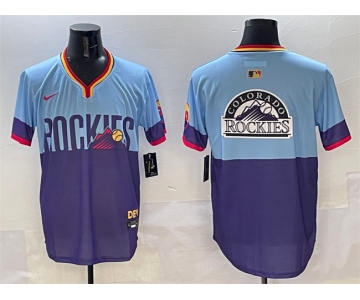 Your Position: Home>NIKE MLB Jerseys>Colorado Rockies>Men>Men's Colorado Rockies Team Big Logo Purple Light Blue 2025 City Connect Limited Stitched Baseball Jersey