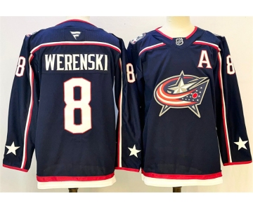 Men's Columbus Blue Jackets #8 Zach Werenski Navy With A Patch Stitched Hockey Jersey