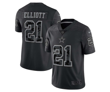 Your Position: Home>NIKE NFL Jerseys>Nike Dallas Cowboys>Limited jerseys>Men's Dallas Cowboys #21 Ezekiel Elliott Black Reflective Limited Stitched Football Jersey