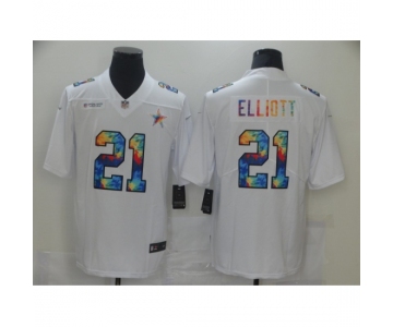 Men's Dallas Cowboys #21 Ezekiel Elliott White Rainbow Version Nike Limited Jersey