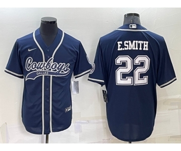 Men's Dallas Cowboys #22 Emmitt Smith Navy Blue Stitched Cool Base Nike Baseball Jersey