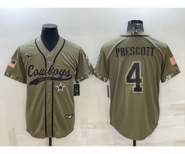Men's Dallas Cowboys #4 Dak Prescott 2022 Olive Salute to Service Cool Base Stitched Baseball Jersey