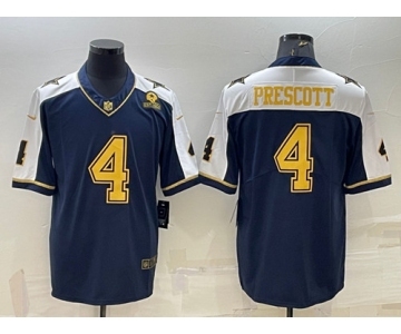 Men's Dallas Cowboys #4 Dak Prescott Navy Gold Edition With 1960 Patch Limited Stitched Football Jersey