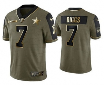 Men's Dallas Cowboys #7 Trevon Diggs 2021 Olive Salute To Service Golden Limited Stitched Football Jersey