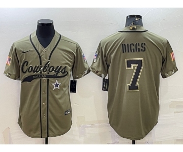 Men's Dallas Cowboys #7 Trevon Diggs 2022 Olive Salute to Service Cool Base Stitched Baseball Jersey