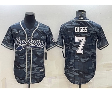 Men's Dallas Cowboys #7 Trevon Diggs Grey Camo With Patch Cool Base Stitched Baseball Jersey
