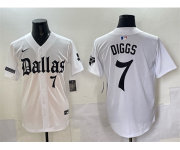 Men's Dallas Cowboys #7 Trevon Diggs White 'Gothic Lone Star Edition' Limited Stitched Baseball Jersey