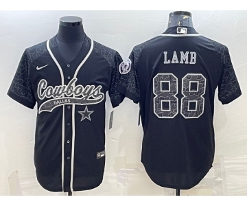 Men's Dallas Cowboys #88 CeeDee Lamb Black Reflective With Patch Cool Base Stitched Baseball Jersey