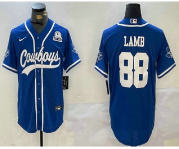 Men's Dallas Cowboys #88 CeeDee Lamb Light Blue 1960 Patch Stitched Cool Base Nike Baseball Jersey