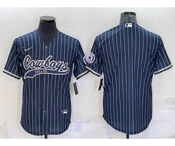 Men's Dallas Cowboys Blank Navy With Patch Cool Base Stitched Baseball Jersey