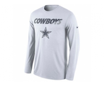 Men's Dallas Cowboys Nike White Legend Staff Practice Long Sleeves Performance T-Shirt