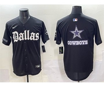 Men's Dallas Cowboys Team Big Logo Black 'Gothic Lone Star Edition' Limited Stitched Baseball Jersey