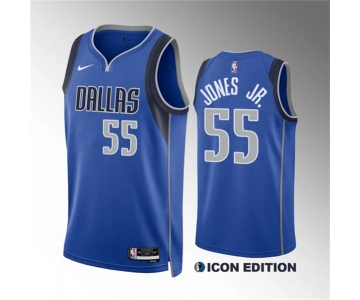 Men's Dallas Mavericks #55 Derrick Jones Jr Blue Icon Edition Stitched Basketball Jersey