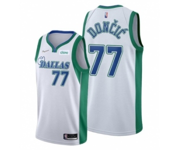 Men's Dallas Mavericks #77 Luka Doncic 75th Anniversary City Edition White Stitched Basketball Jersey