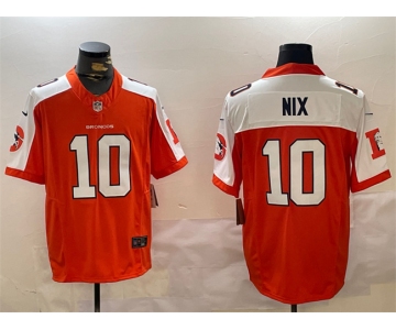 Men's Denver Broncos #10 Bo Nix Orange 2024 F.U.S.E. Throwback Vapor Limited Alternate Stitched Football Jersey