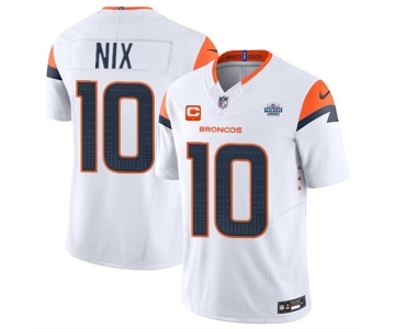 Men's Denver Broncos #10 Bo Nix White 2024 F.U.S.E. With Draft Pacth and 1-Star C Patch Vapor Limited Football Stitched Jersey