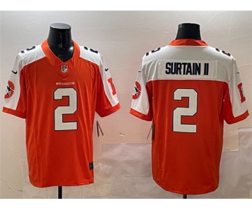 Men's Denver Broncos #2 Patrick Surtain II Orange White 2024 F.U.S.E. V2 Throwback Vapor Limited Alternate Stitched Jersey