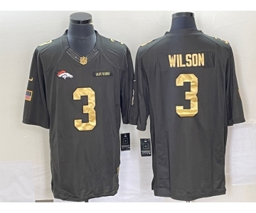 Men's Denver Broncos #3 Russell Wilson Green Gold Salute To Service Stitched Nike Limited Jersey