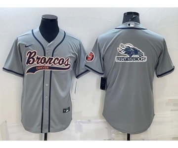 Men's Denver Broncos Gray Team Big Logo With Patch Cool Base Stitched Baseball Jersey