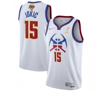 Men's Denver Nuggets #15 Nikola Jokic White 2023 Finals Champions Earned Edition Stitched Basketball Jersey