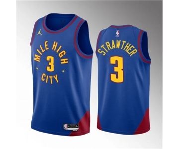 Men's Denver Nuggets #3 Julian Strawther Blue 2023 Draft Statement Edition Stitched Basketball Jersey