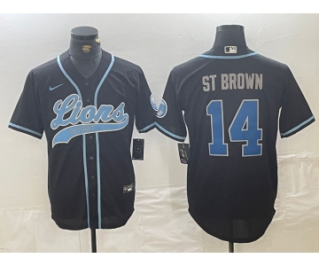 Men's Detroit Lions #14 Amon-Ra St. Brown Black Cool Base Stitched Baseball Jersey