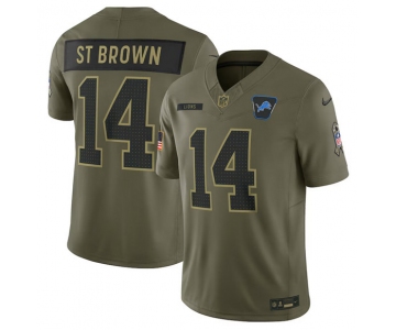 Men's Detroit Lions #14 Amon-Ra St. Brown Olive 2025 Salute to Service Limited Football Stitched Jersey