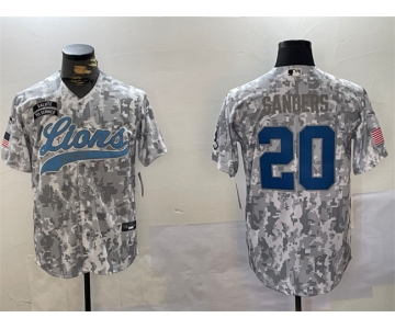 Men's Detroit Lions #20 Barry Sanders 2024 Arctic Camo Salute To Service Stitched Baseball Jersey