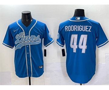 Men's Detroit Lions #44 Malcolm Rodriguez Blue Cool Base Stitched Baseball Jersey