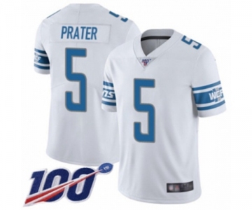 Men's Detroit Lions #5 Matt Prater White Vapor Untouchable Limited Player 100th Season Football Jersey