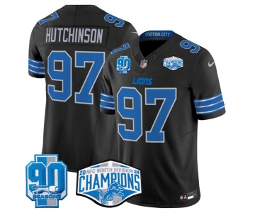 Men's Detroit Lions #97 Aidan Hutchinson Black 2024 NFC North Champions 90th Anniversary Patch F.U.S.E. Vapor Limited Stitched Jersey