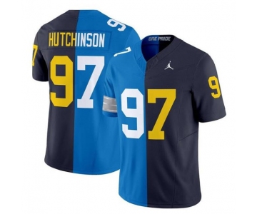 Men's Detroit Lions #97 Aidan Hutchinson Blue Navy Split F.U.S.E. Vapor Limited Football Stitched Jersey