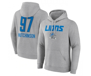 Men's Detroit Lions #97 Aidan Hutchinson Heather Gray Team Wordmark Player Name & Number Pullover Hoodie