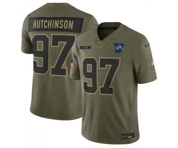 Men's Detroit Lions #97 Aidan Hutchinson Olive 2025 Salute to Service Limited Football Stitched Jersey