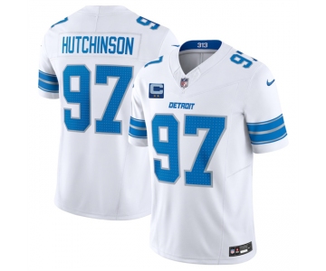 Men's Detroit Lions #97 Aidan Hutchinson White 2025 F.U.S.E. With 2-Star C Patch Vapor Limited Football Stitched Game Jersey