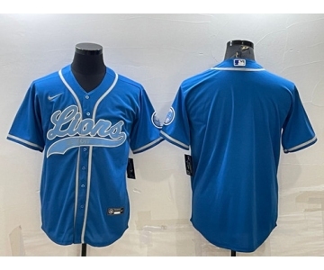Men's Detroit Lions Blank Blue With Patch Cool Base Stitched Baseball Jersey