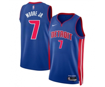 Men's Detroit Pistons #7 Wendell Moore Jr Blue 2024 Icon Edition Stitched Jersey