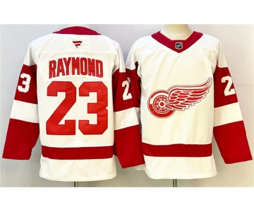 Men's Detroit Red Wings #23 Lucas Raymond White 2024-25 Stitched Jersey