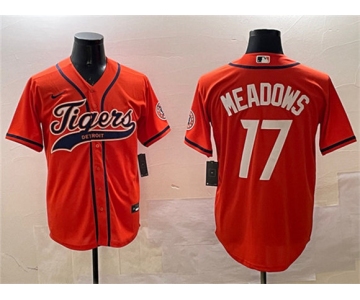 Your Position: Home>NIKE MLB Jerseys>Detroit Tigers>Men>Men's Detroit Tigers #17 Parker Meadows Orange With Patch Cool Base Stitched Baseball Jersey