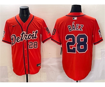 Men's Detroit Tigers #28 Javier Báez Orange With Patch Vapor Premier Limited Stitched Baseball Jersey