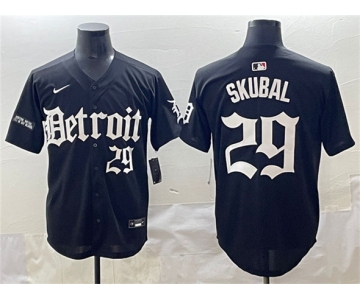 Your Position: Home>NIKE MLB Jerseys>Detroit Tigers>Men>Men's Detroit Tigers #29 Tarik Skubal Black 'Motor Gothic Edition' Vapor Premier Limited Stitched Baseball Jersey
