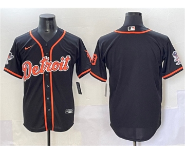 Men's Detroit Tigers Team Big Logo Black With Patch Cool Base Stitched Baseball Jersey